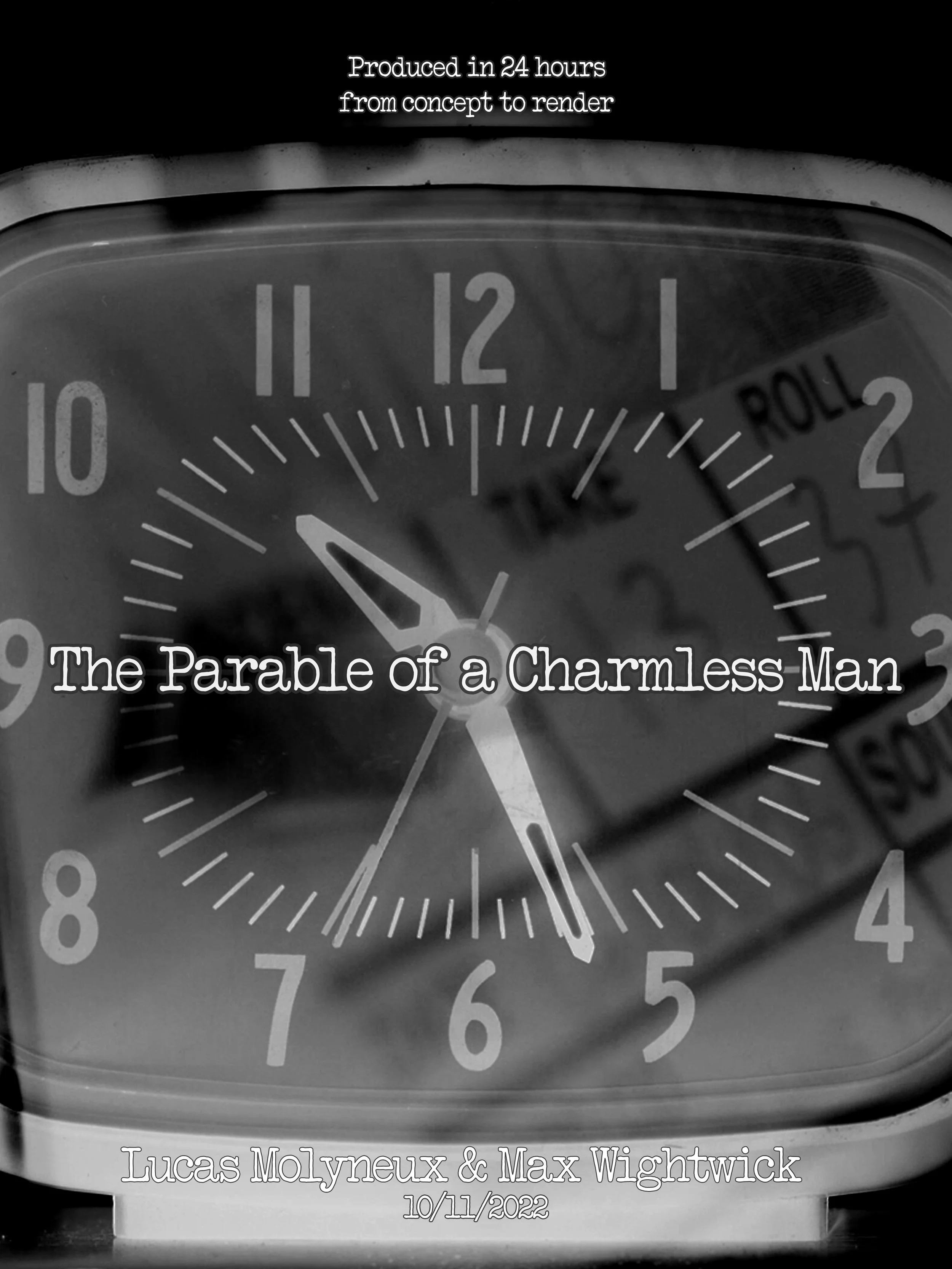 The Parable of a Charmless Man is an experimental, surrealist film made in twenty-four hours. From writing to completion, the whole project was a test of creativity when given a specific window of time.